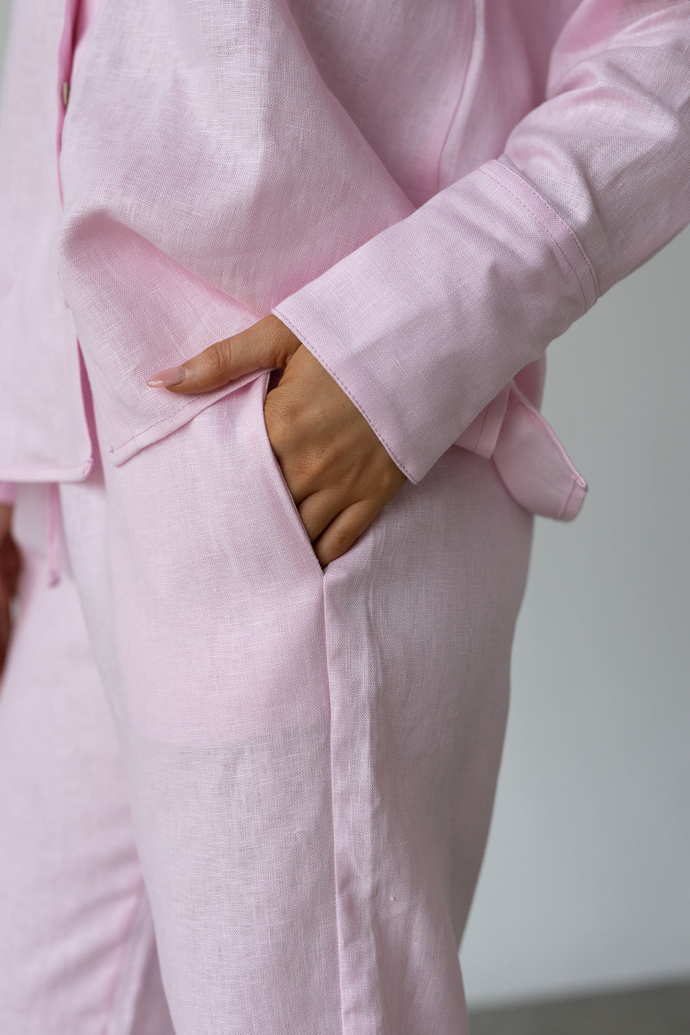 Pantalón en lino de corte amplio, ligero y fresco. Con pretina elástica y tira ajustable para un fit cómodo, además de bolsillos laterales funcionales. Una prenda versátil y atemporal, ideal para llevar en la playa o en tu día a día.